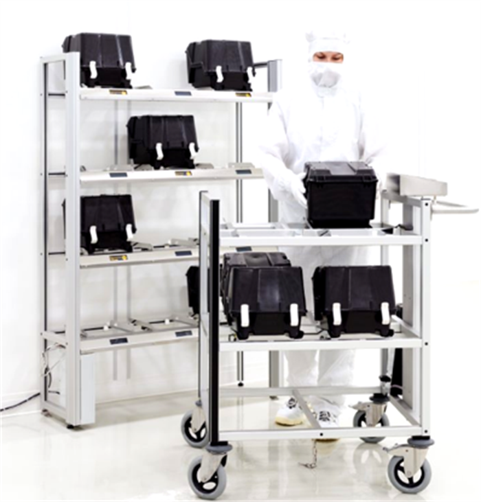采用非玻璃管標簽——RFID Label 13.56MHz (適用于8吋FOUP及Shiping Box),RFID的識別率達99.9%,可自定義信息。根據(jù)現(xiàn)有貨架定制安裝框架,易改造、易清理,可用于雙層內(nèi)外式貨架及氮氣柜,屬于低成本方案。