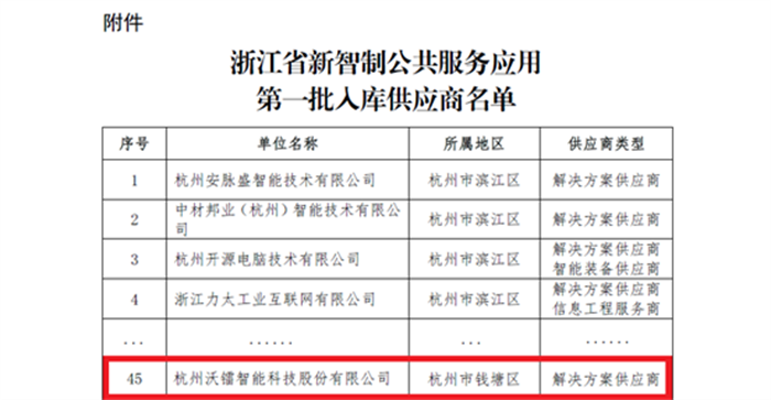 近日,浙江省新智造公共服務應用第一批入庫供應商名單公布,沃鐳智能位列其中。