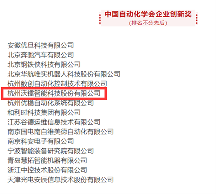 2021年“中國(guó)自動(dòng)化學(xué)會(huì)企業(yè)創(chuàng)新獎(jiǎng)”、“杰出自動(dòng)化工程師獎(jiǎng)” 、“中國(guó)自動(dòng)化學(xué)會(huì)小微創(chuàng)業(yè)獎(jiǎng)”、“智慧系統(tǒng)創(chuàng)新解決方案獎(jiǎng)”評(píng)審工作已結(jié)束,沃鐳智能作為自動(dòng)化領(lǐng)域中擁有卓越自主創(chuàng)新能力的企業(yè),在此次評(píng)選中榮獲“中國(guó)自動(dòng)化學(xué)會(huì)企業(yè)創(chuàng)新獎(jiǎng)”。