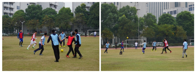 足球:中午12點(diǎn)左右,上午的兩個(gè)比賽也分別決出了各個(gè)項(xiàng)目的冠亞季軍。簡(jiǎn)單的午飯過后,來不及打盹,足球運(yùn)動(dòng)員們便熱情似火地給大家上演了一場(chǎng)精彩十分的足球表演賽??粗鴪?chǎng)上在穿梭在雨幕中運(yùn)動(dòng)員,場(chǎng)外在風(fēng)雨中吶喊助威的觀眾,筆者想這大概就是運(yùn)動(dòng)最迷人的地方吧:忘了風(fēng)雨,忘了時(shí)間,心中唯有勝利的信念。