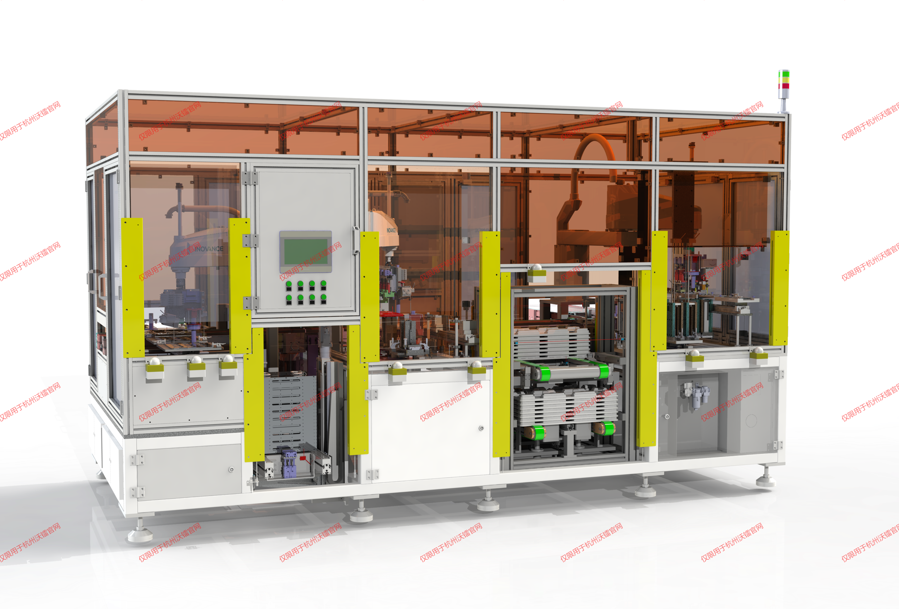 設(shè)備功能實(shí)現(xiàn)DBC與基板的安裝及焊接,通過上下視覺定位將DBC、焊片、插針治具貼裝到銅基板上。再通過焊接爐加熱后將焊片融化,然后將DBC與銅基板焊接在一起。設(shè)備實(shí)現(xiàn)了產(chǎn)品的自動(dòng)上下料、自動(dòng)組裝、焊接治具的自動(dòng)回流等功能。備配有治具防錯(cuò)料庫具有防呆功能,設(shè)備啟動(dòng)前會(huì)自動(dòng)判斷工裝是否安裝正確;設(shè)備有識別解析產(chǎn)品碼功能,可自動(dòng)判斷當(dāng)前產(chǎn)品是否跟系統(tǒng)設(shè)定型號相同或可自動(dòng)根據(jù)產(chǎn)品碼切換程序。支持SECS/GEM、SMEMA通訊接口等協(xié)議。